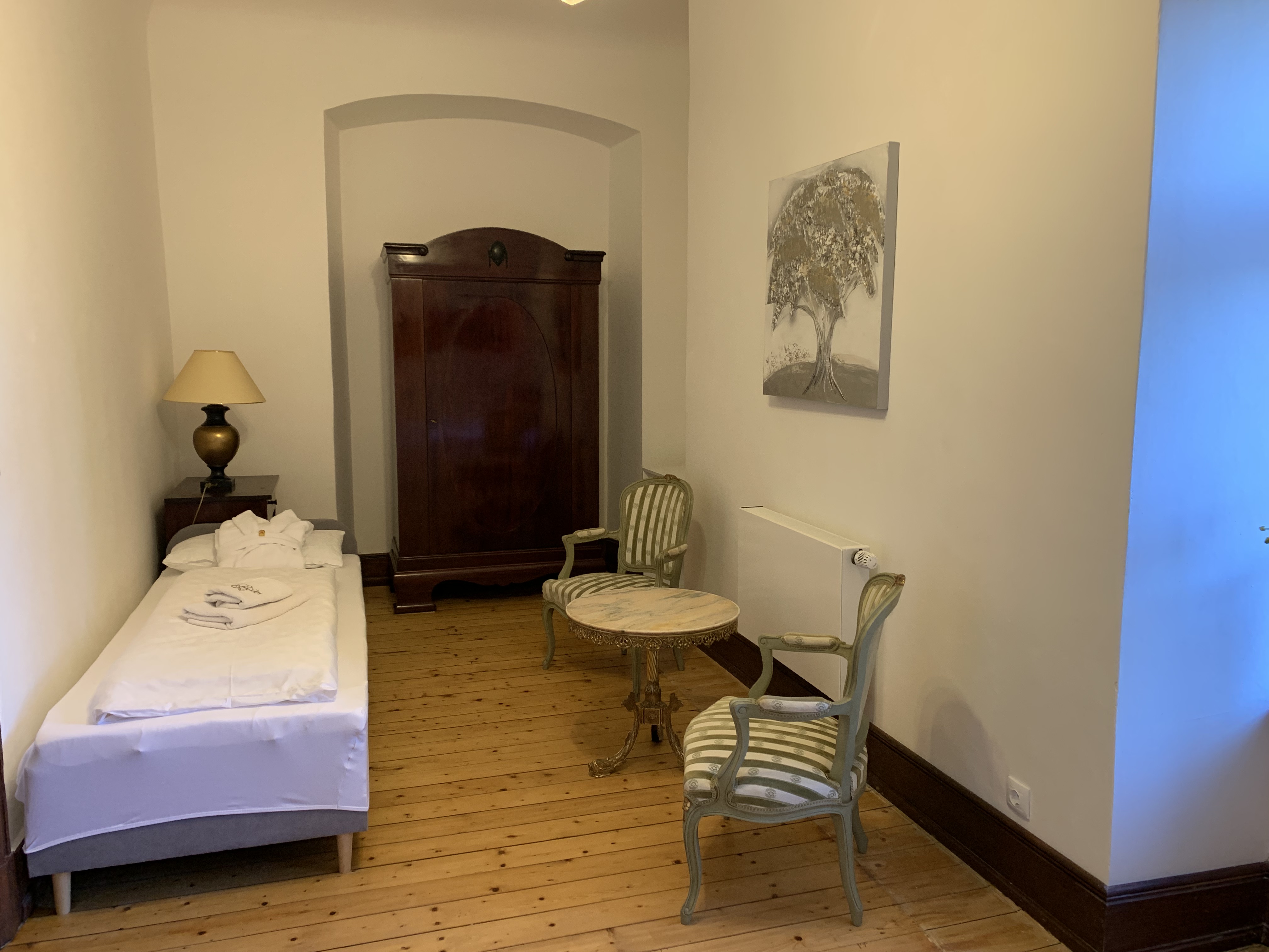 Direkt im Anschluss an die drei Schlafzimmer geht es in den Saal Anna, dieser hat eine Größe von 60qm und kann mit oder extra gebucht werden.