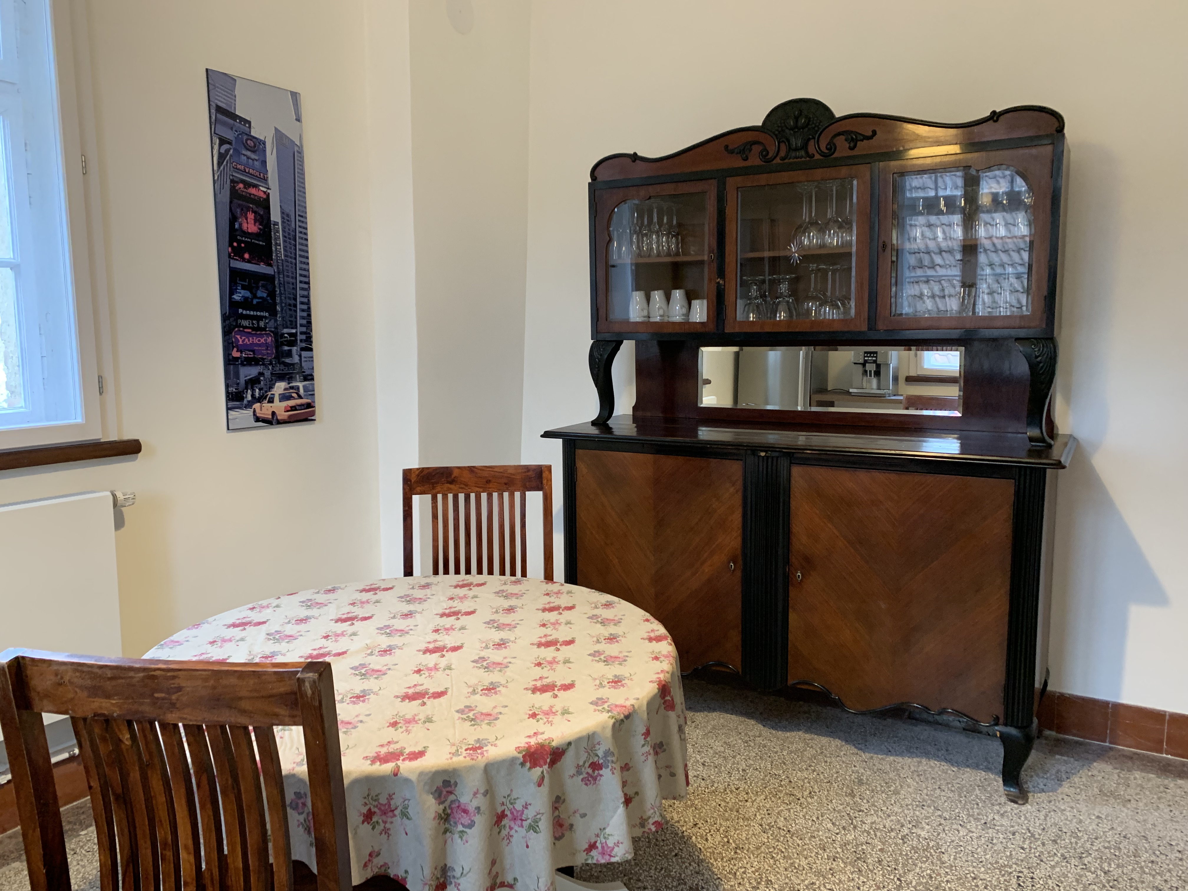 Das Gebäude hat noch die bauzeitlichen Fenster, die meisten Türen, die Holzfußböden und der Terrazzo-Boden). Der Hausabschnitt mit dieser Ferienwohnung wurde 2023 komplett restauriert und saniert.