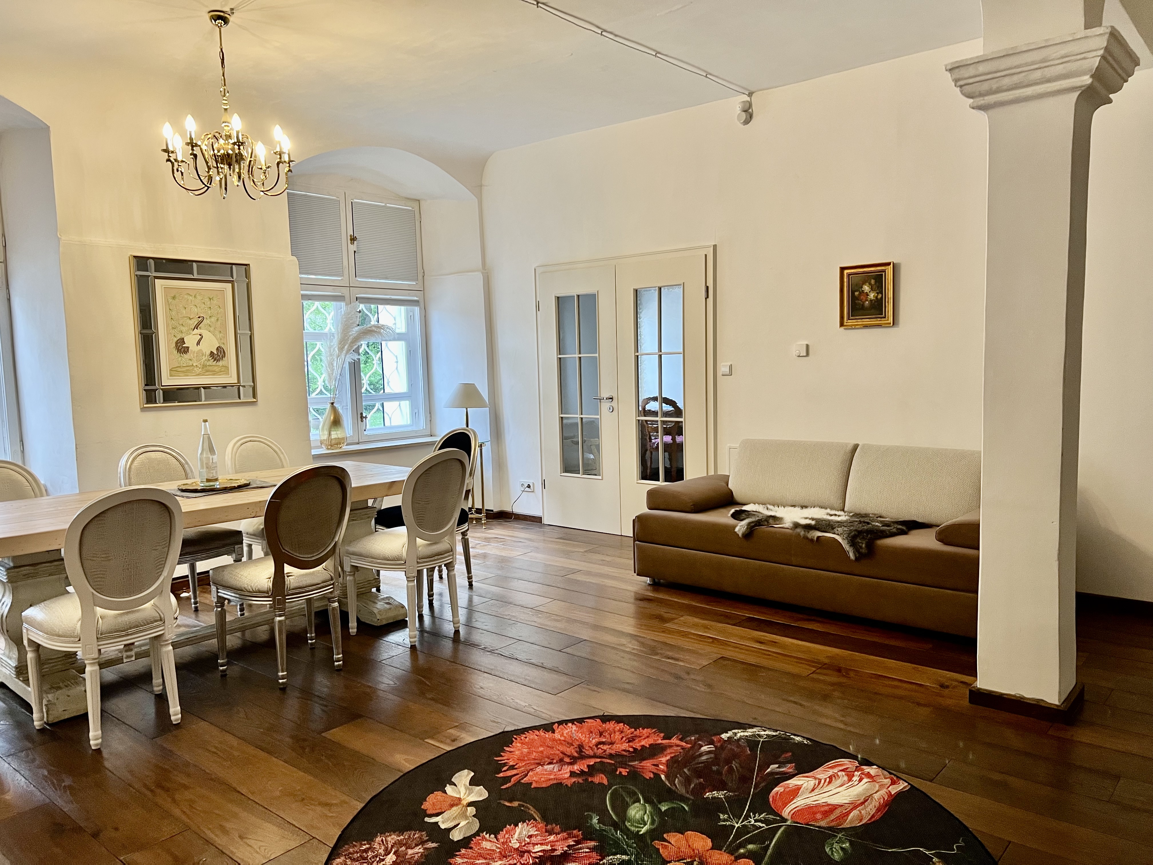 Werden von Gästen für Familien- oder Freundestreffen mehrere Wohnungen gleichzeitig gebucht, ist diese Suite der zentrale Treffpunkt, da ein großer Klostertisch viele (und noch mehr) Gäste an sich aufnehmen kann.